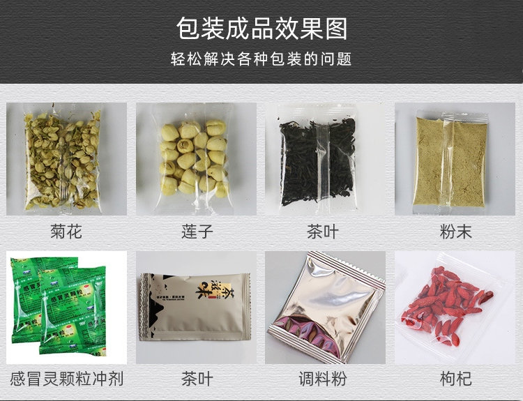 7.彩色觸摸屏和穩(wěn)定可靠的雙軸高精度輸出的PLC控制,制袋、計量、充填、封合、打碼、切袋一次完成.